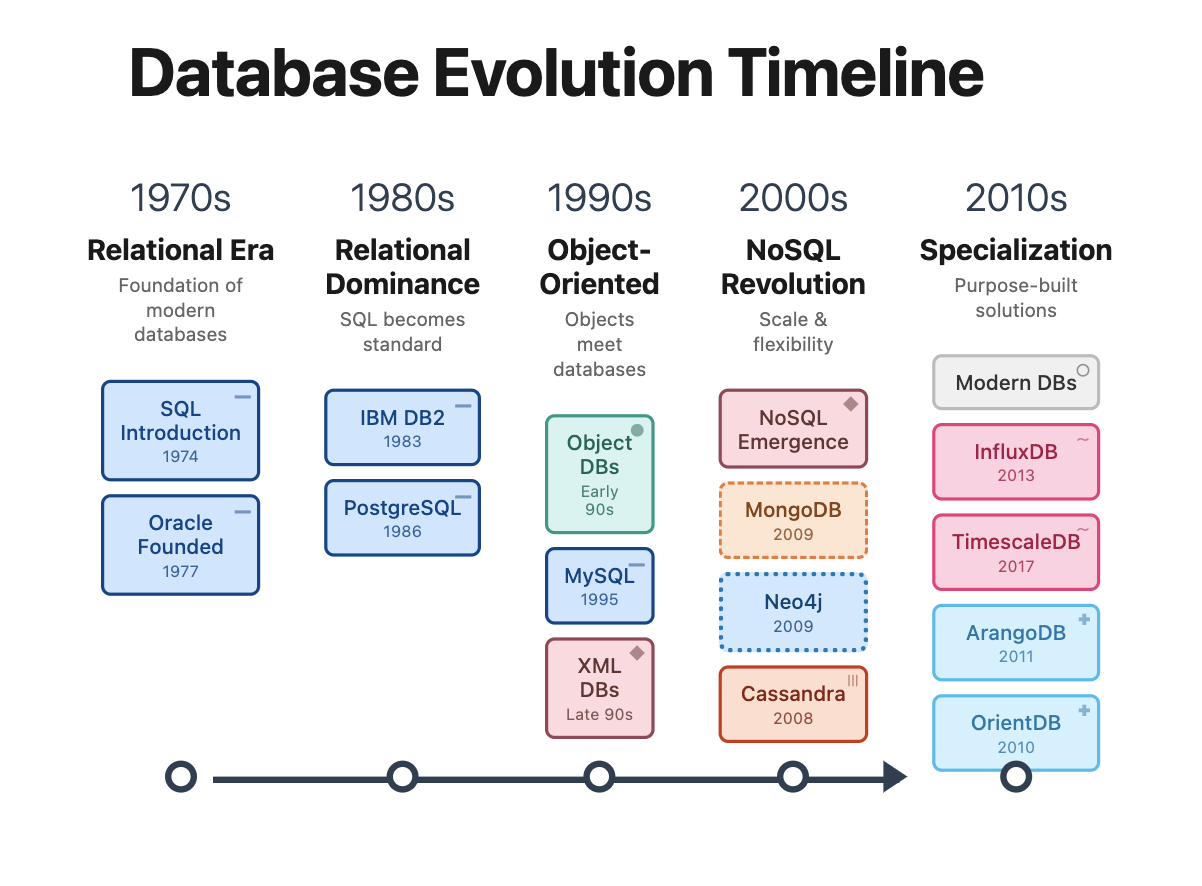 | Time-Series Databases | Time-ordered data | InfluxDB, TimescaleDB | IoT, monitoring systems |