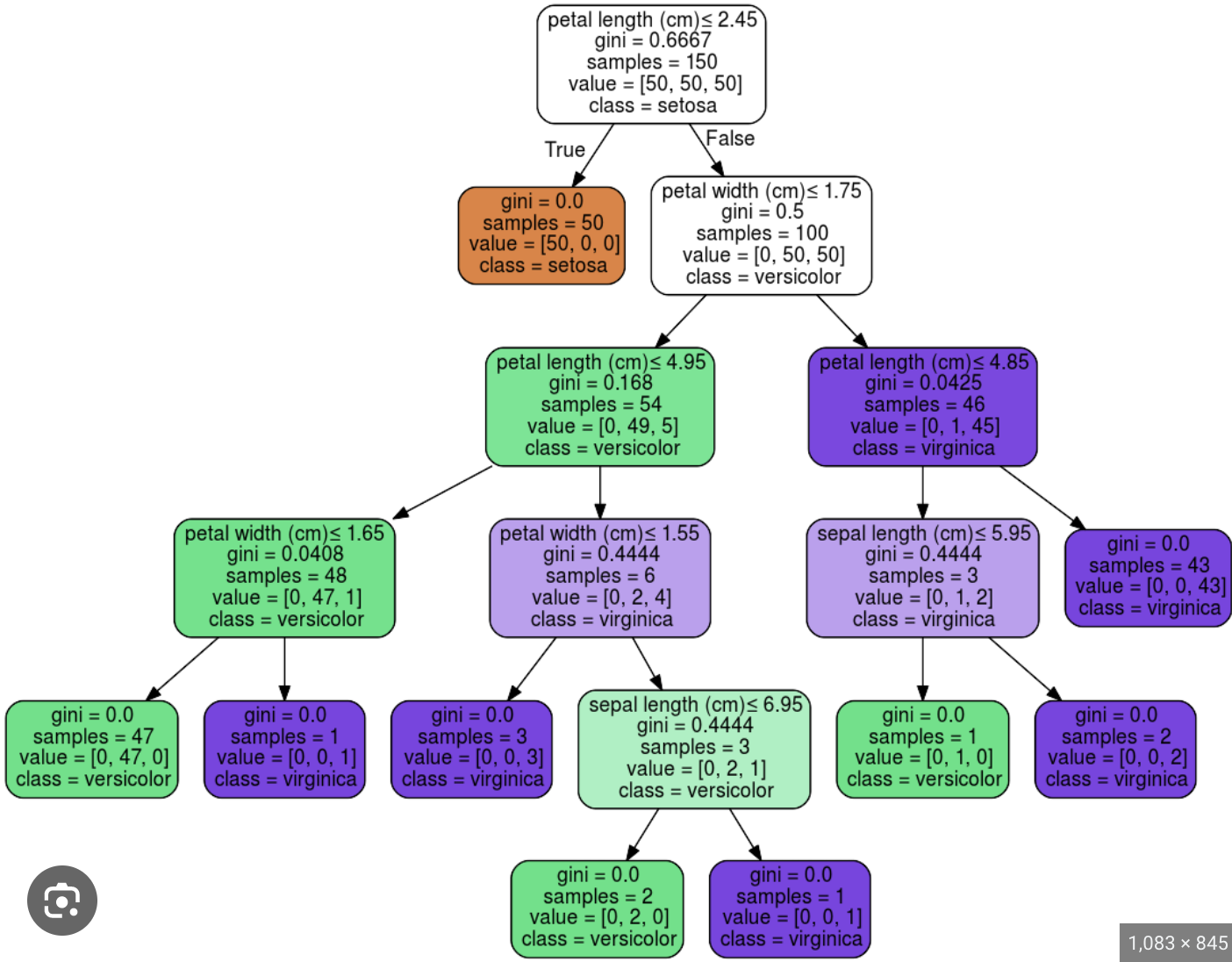 This is a decision tree trained on the Iris dataset. It is overfitting.