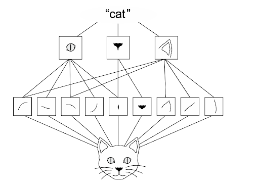 Each convolution layer extracts features from the previous layer. It zooms out and abstracts the patterns