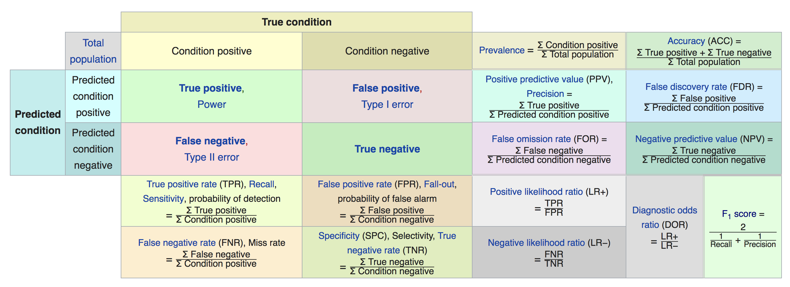 Nous pouvons définir plusieurs métriques en utilisant la matrice de confusion
