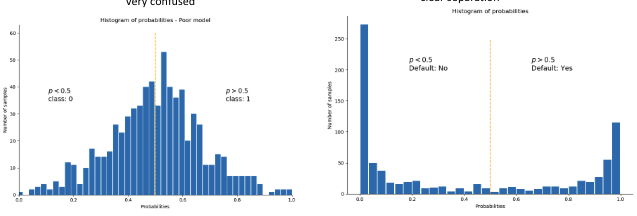 L'histogramme des valeurs estimées fournit une bonne indication du pouvoir de séparation du modèle.
