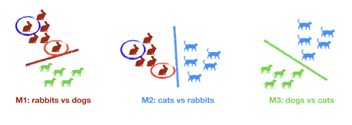 M1 : lapins vs chiens M2 : chats vs lapins M3 : chiens vs chats